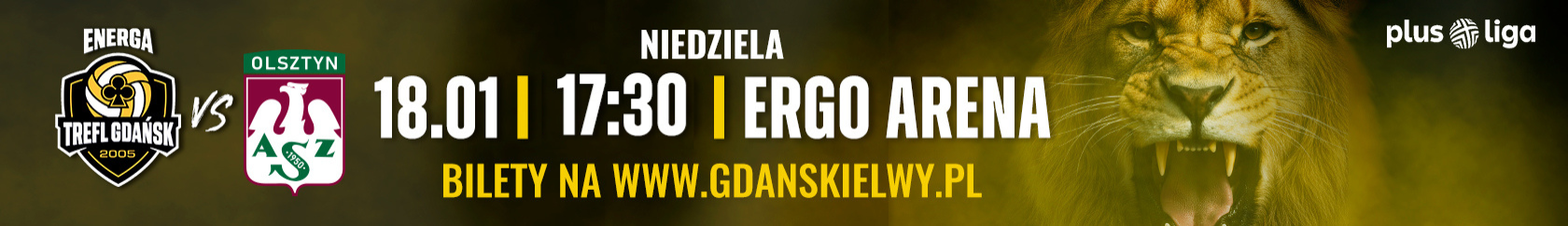 Już w niedzielę, 18 stycznia o 17:30 Energa Trefl Gdańsk podejmie Indykpol AZS Olsztyn w kolejnym domowym meczu PlusLigi. "Gdańskie lwy" będą chciały przy wsparciu kibiców obronić niezdobytą w tym sezonie ERGO ARENĘ i dopisać do tabeli kolejne ważne punkty. Bądź częścią tego wydarzenia - już dziś kup bilet na www.gdanskielwy.pl i wspieraj gdański zespół z trybun.